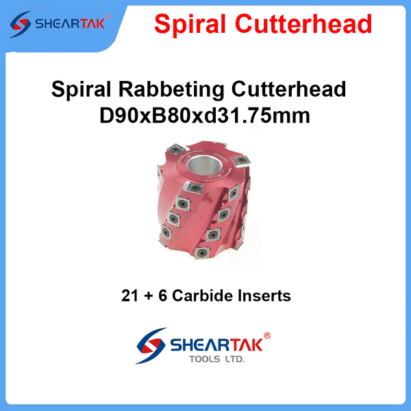 These helical cutter heads are made of hard aluminum and come with straight-edge carbide knives and eight helical grooves. The segmented knives produce an extraordinary finish on softwood, hardwood, and man-made boards. The carbide knives are 8 to 10 times the life use of the single-edge HSS blade. Each reversible cutter has four cutting edges that can be rotated to reveal a new one when it becomes nicked or dull, which reduces your downtime and your sanding work. 3pcs spur knives on both sides are for rabbeting and grooving.